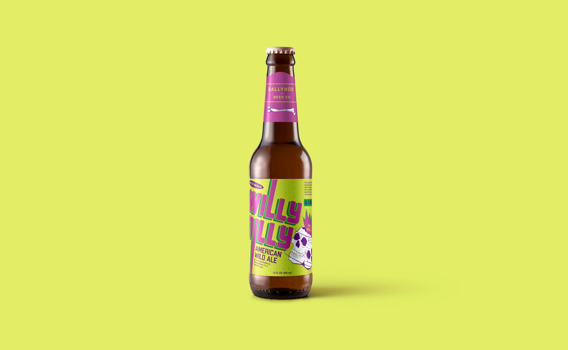 A beer label design for a sour ale, inspired by the phrase “willy nilly” and the sour flavor profile.